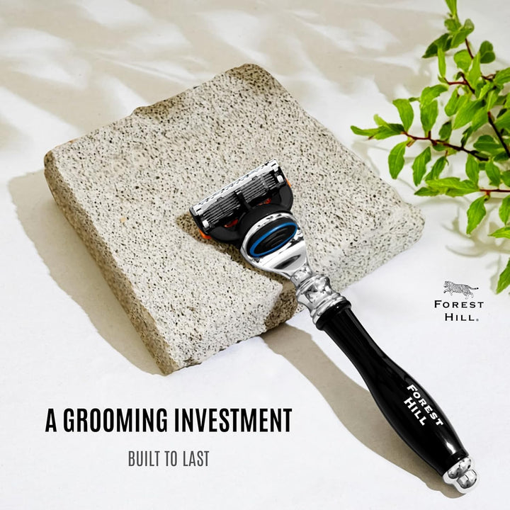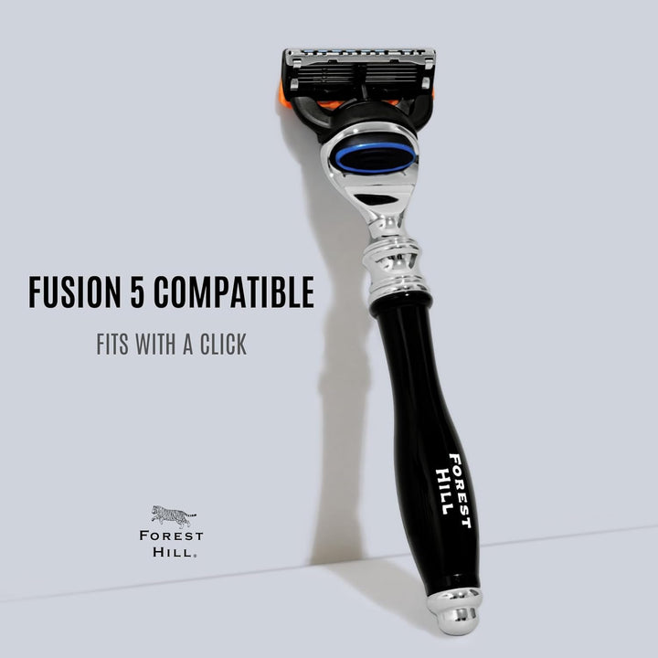 The Ashford Razor, equipped with a Fusion 5 blade, is ergonomically designed to assist you in giving the smoothest, cleanest and an absolutely safe, cut free shave.